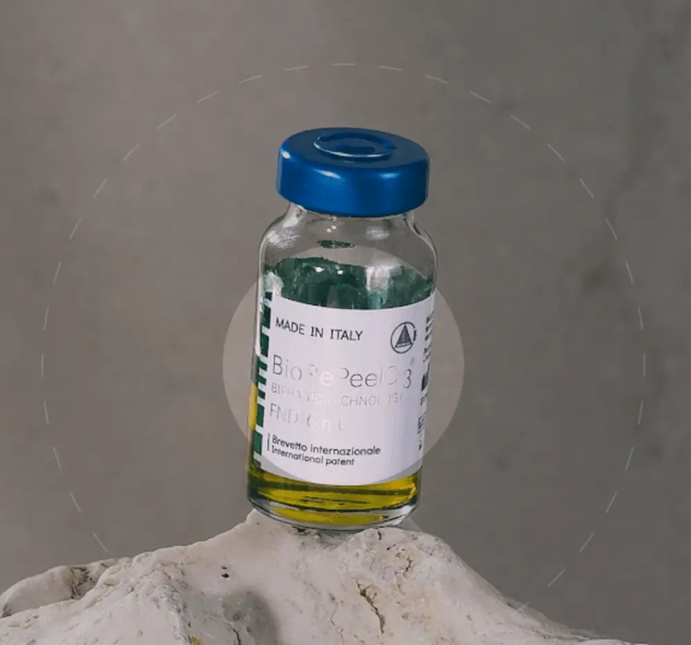 BioRePeelCI3 FND es un dispositivo médico innovador y bifásico con una acción de bioestimulación, revitalización y peeling, indicado para la cara, el cuello, el escote y la zona íntima, con una concentración de 35% del ATC como ingrediente principal.